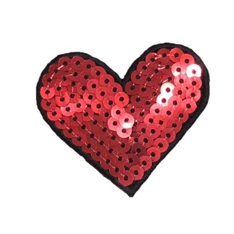 แผ่นปักเลื่อมรูปหัวใจสีแดงขนาดใหญ่สำหรับเย็บติดเสื้อผ้า