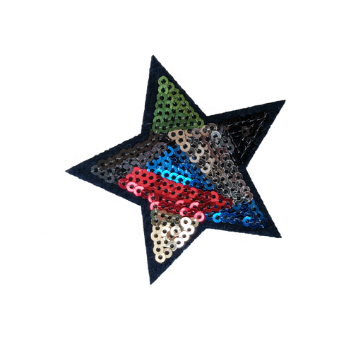 แผ่นปักเลื่อมรูปดาวห้ามุมเจ็ดสีแผ่นรีดติดกากเพชรสำหรับกางเกงยีนส์ขาสั้น